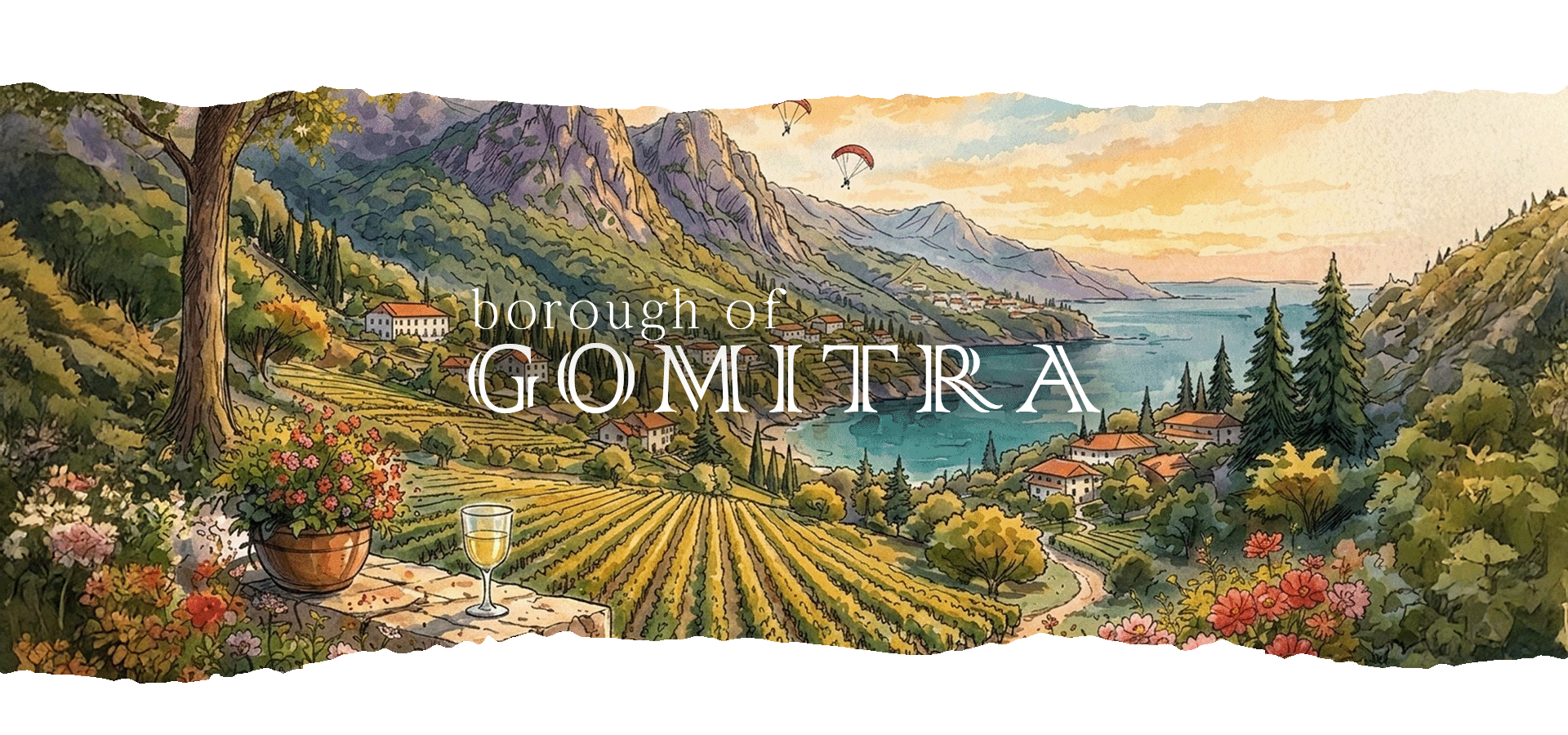 Gomitra | Sphere 5 | Vineyards, cheese, & wine Gomitra is a borough located south of the city of Oro Valle in Sphere 5 of the island of Luxersom. Known for its dramatic coastal landscapes, mountainous terrain, vineyards, and high-end residential districts, Gomitra functions as the principal residential and recreational region serving the urban center... View more